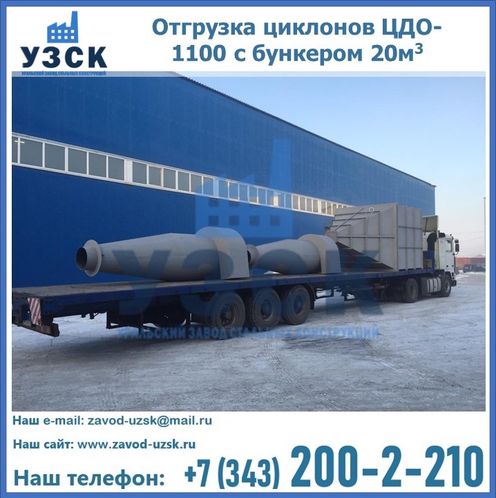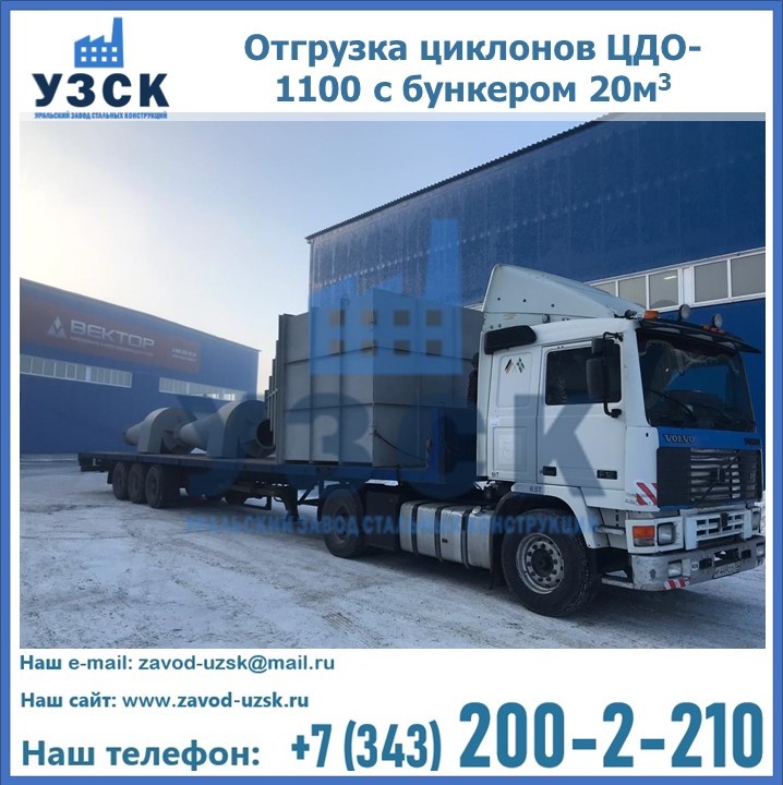 Циклоны ЦДО-1100 с бункером на 20 кубов были отгружены в декабре 2018 года в г. Новосибирск Ростов-на-Дону.