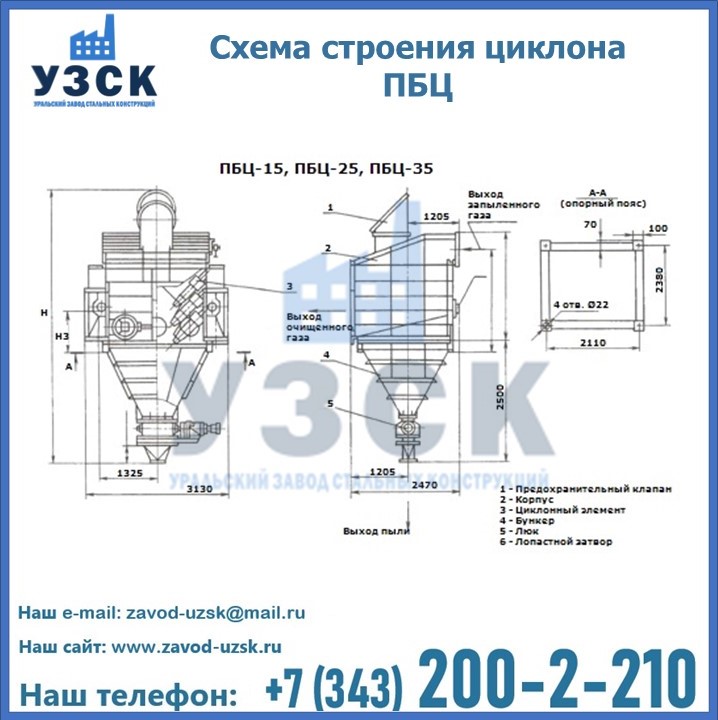 Завод «УЗСК» в Ростове-на-Дону предлагает приобрести циклоны ПБЦ и прочие устройства, полностью укомплектованные и готовые к эксплуатации. Мы гарантируем соответствие оборудования всем требованиям ГОСТ и ТУ, износостойкость и высокую производительность предлагаемого оборудования. Уральский Завод Стальных Конструкций изготавливает и продает надежное, эффективное и производительное оборудование, имеющее длительную гарантию и большой эксплуатационный ресурс. Если требуется изготовить циклон нестандартных размеров, то такой вариант выполнения заказа тоже предусмотрен, так как предприятие имеет собственные производственные площади и надежных поставщиков. На все поставляемое или производимое оборудование имеются чертежи и прочая техническая документация. Заказать и купить циклоны или прочее оборудование высокого качества и по доступной цене можно через наш сайт или по указанному в разделе «Контакты» телефону.