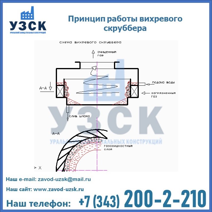 - высоким уровнем эффективности и качества очистки газа мокрым способом, вне зависимости от вида и уровня загрязненности.