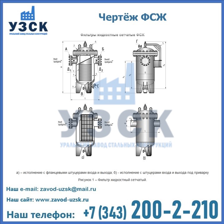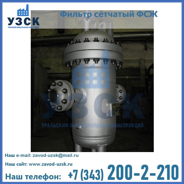 Очистку перекачиваемых жидкостей на предприятиях нефтяной, пищевой, горнорудной, фармацевтической и других отраслей промышленности эффективно выполнять с помощью жидкостного сетчатого фильтра — емкостное оборудование цилиндрической формы со съемной крышкой и элементом фильтрации внутри. Оснащенные им всасывающие линии насосных станций и установок защищены от проникновения твердых частиц в функциональные узлы гидравлической системы. Оборудование служит для перекачивания токсичных, агрессивных и иных эмульсий, суспензий, жидкостей. Купить фильтр сетчатый жидкостный ФСЖ в Ростове-на-Дону с гарантией производителя предлагает «Уральский завод стальных конструкций». Мы выполняем проектирование и изготовление ФСЖ по индивидуальным требованиям (климатическая зона, транспортируемая жидкость).